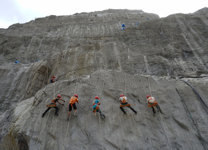 比如在修建烏東德水電站時,施工機械不能近距離到達的懸崖邊坡,只能采用“蜘蛛人”專業團隊進行人工作業,這些人員在近2000多米高、幾近90度垂直的懸崖峭壁上作業,還要克服心里慌、身體抖、腳打滑的身體反應,完成造孔、插桿、注漿、掛網、噴護作業。